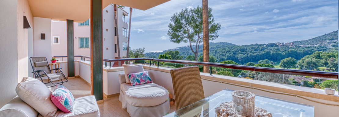 Entdecken Sie eine Oase der Ruhe und des Komforts im angesehenen Viertel von Bendinat. Diese zum Verkauf stehende Wohnung befindet sich im zweiten Stock neben dem Bendinat Royal Golfplatz und bietet einen ungehinderten Blick auf das Meer und die Hügel des Golfplatzes. Sie ist umgeben von üppigen Gemeinschaftsgärten mit Swimmingpools, einem beheizten Innenpool und einer Sauna. Auf einer Gesamtfläche von 122 m² verfügt die …